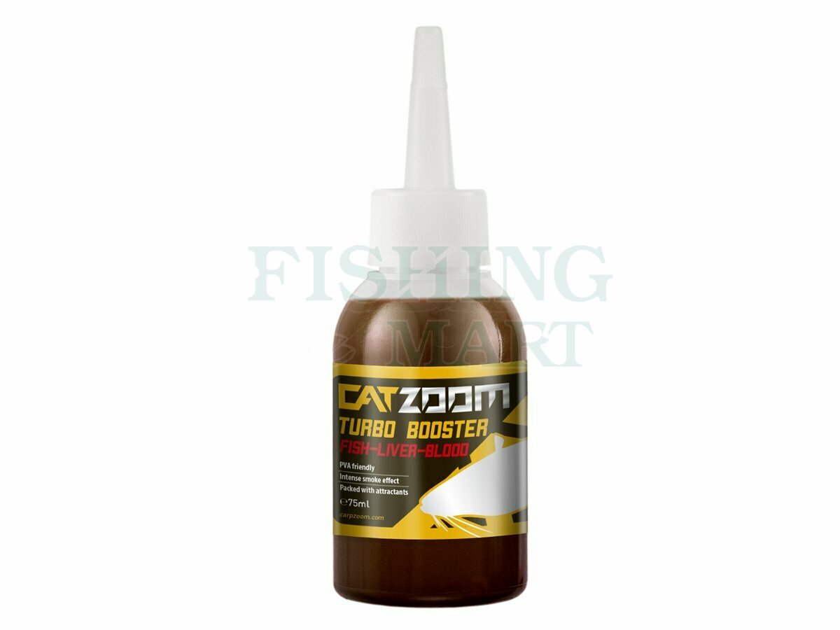 Turbo Booster został opracowany specjalnie do polowania na sumy. Aromat jest wyjątkowo intensywny, a konsystencja zapewnia długotrwały efekt chmury. Smak ryba-wątroba-krew wabi ryby z dużych odległości. W ofercie buteleczki o zawartości 75 ml.