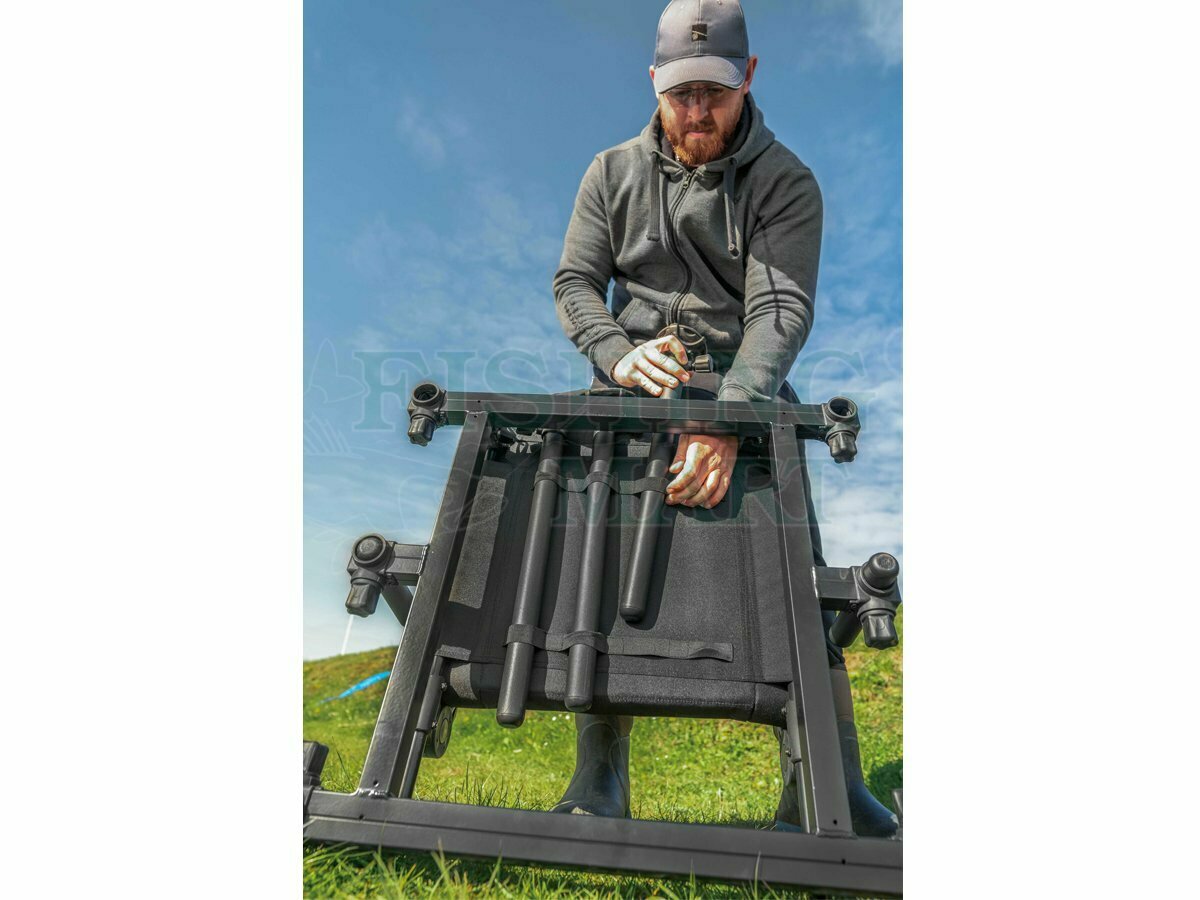 Absolute 36 Feeder Chair wyposażony w niezwykle wygodne siedzisko jest doskonały na długie wyprawy, a dzięki składanemu oparciu i wyjmowanym nogom, które można przechowywać z tyłu krzesła za pomocą dołączonych pasków, można go łatwo spakować. W zestawie pasek na ramię ułatwiający transport.