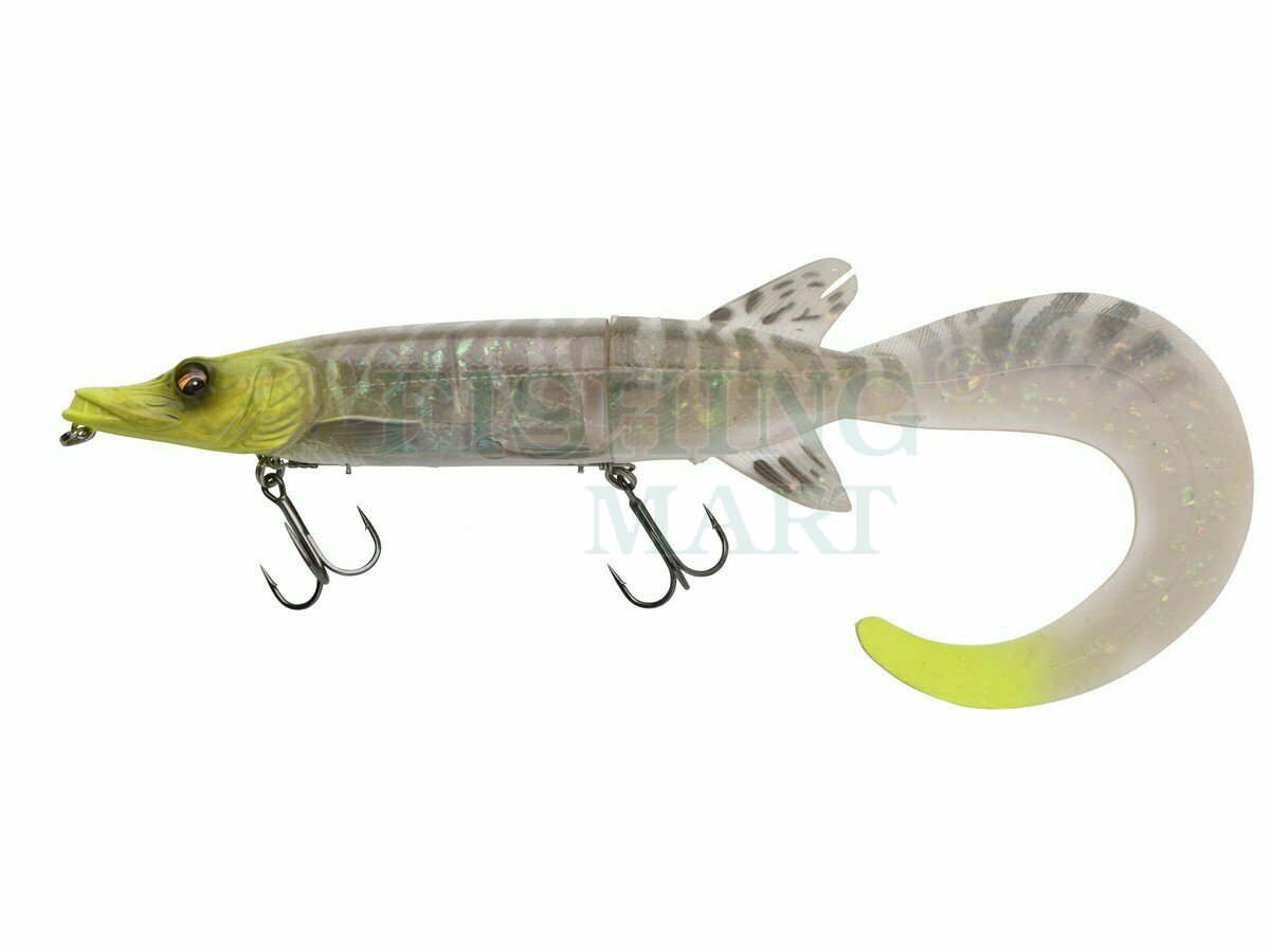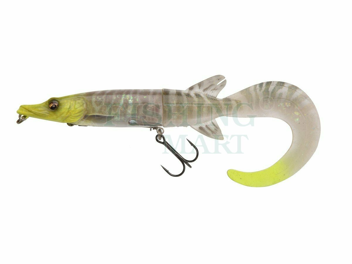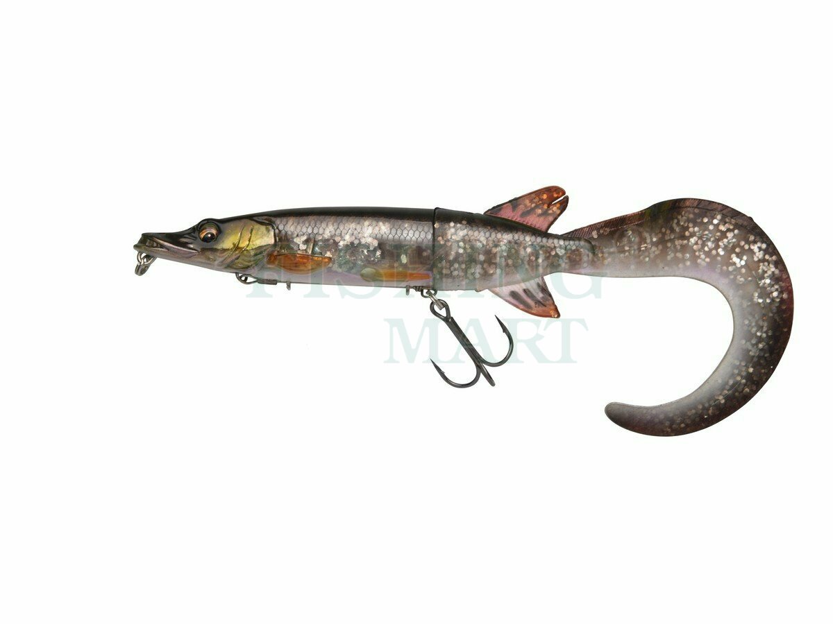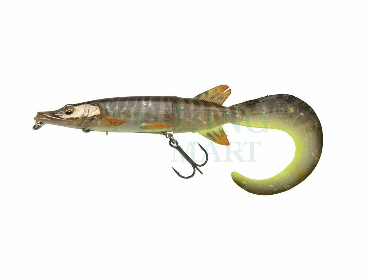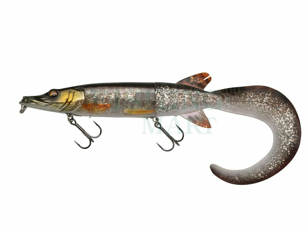 Super realistyczna imitacja małego szczupaka naładowana innowacyjnymi funkcjami! Niesamowicie odwzorowane detale, zeskanowane w 3D, oszukają nawet najbardziej ostrożne drapieżniki i zapewnią Ci agresywne brania. Ogon typu twister doskonale nadaje się do wolnego i bardzo wolnego prowadzenia. Korpus zachowuje stabilną pracę, a kusząco ruszający się ogon doskonale prowokuje ryby. To zabójcza kombinacja na ostrożne duże szczupaki. Kiedy ogon jest przykręcony do dołu, spycha głowę przynęty w dół - tak, że płynie ona pod powierzchnią na mniej więcej tej samej głębokości przez cały czas. Jednak wystarczy obrócić ogon do góry, a napór wody na ogon wymusi uniesienie głowy - tak, że węgorz wypływa na powierzchnię i płynie tuż pod powierzchnią, tworząc delikatną falę na powierzchni! Innowacyjny system zbrojenia umożliwia odłączenie kotwicy od korpusu przynęty w momencie brania. System mocowany jest do wbudowanego krętlika, dzięki czemu ryba ma duże trudności z uwolnieniem się z przynęty i wykorzystaniem jej jako dźwigni. Ten sposób zbrojenia chroni też miękką część przynęty przed zniszczeniem w wyniku kontaktu z zębami szczupaka.